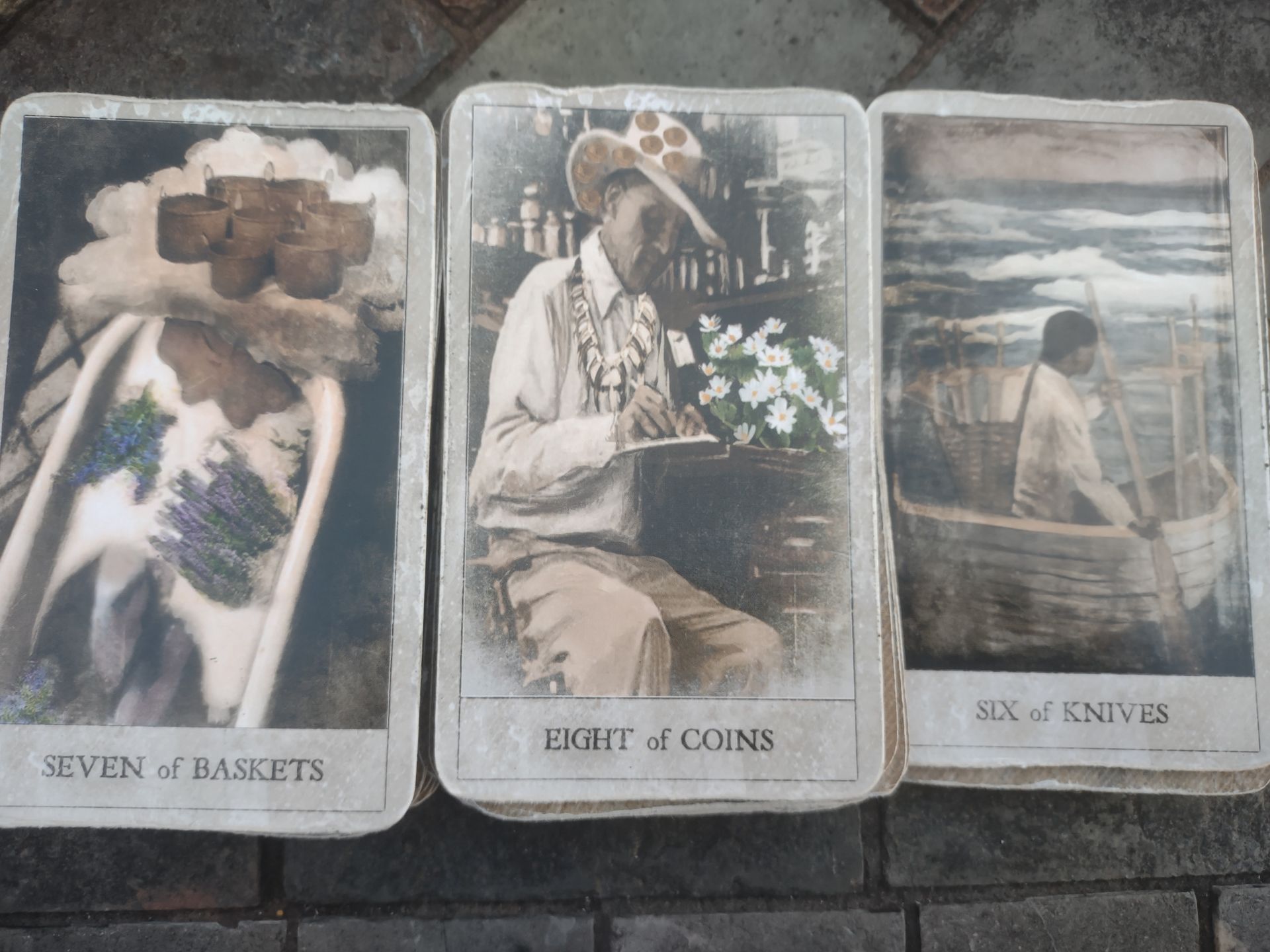 Pictured above starting the Hoodoo tarot by Tayannah Lee McQuillar and illustrated by Katelan V. Foisy, "Conjure cards" by Jake Richards(the divination playing cards with extra images), and the "Wild Unknown Tarot" by Kim Krans (Hierophant Raven image).